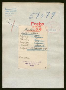 La carta fechada el 21-05-1917, que inicia el expediente, firmada por L. Krafft, de la Ligue Patriotique des Françaises, remite las fichas FRB 056651 a FRB 056979 y FRB 057001 a FRB 057100, y se encuentra en el expediente cuya signatura es 27617/001: http://10.14.168.24/index.php/expediente-de-celestin-jules-francois-delavente