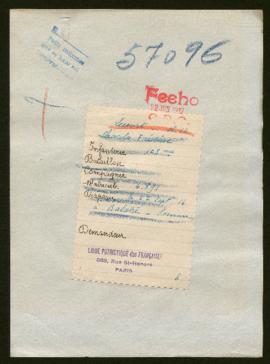 La carta fechada el 21-05-1917, que inicia el expediente, firmada por L. Krafft, de la Ligue Patriotique des Françaises, remite las fichas FRB 056651 a FRB 056979 y FRB 057001 a FRB 057100, y se encuentra en el expediente cuya signatura es 27617/001: http://10.14.168.24/index.php/expediente-de-celestin-jules-francois-delavente