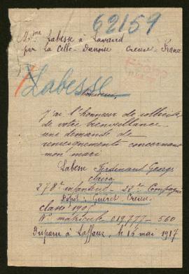 Contiene carta de respuesta devuelta a la Oficina (1917-08-14)