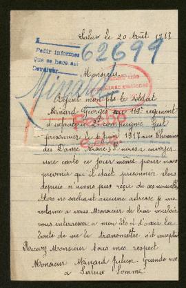 En el resultado de las gestiones en la ficha normalizada de la Oficina hay una nota mecanografiada que dice que se encuentra en el campo de Limburg
