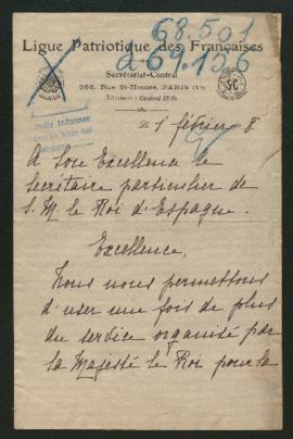 La carta fechada el 01-02-1918 que inicia el expediente, firmada por J. H. Frossard, de la Ligue Patriotique des Françaises, remite las fichas FRB 068501 a FRB 069156 y se encuentra en el expediente cuya signatura es 27798/001: http://10.14.168.24/index.php/expediente-de-117