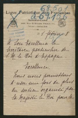 La carta fechada el 01-02-1918 que inicia el expediente, firmada por J. H. Frossard, de la Ligue Patriotique des Françaises, remite las fichas FRB 068501 a FRB 069156 y se encuentra en el expediente cuya signatura es 27798/001: http://10.14.168.24/index.php/expediente-de-117