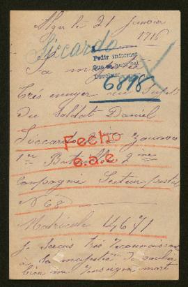 En la carta no se mencionan ni lugar ni fecha de desaparición. El punto de acceso de lugar y el evento se han extraído de una fuente externa. URL: http://www.chtimiste.com