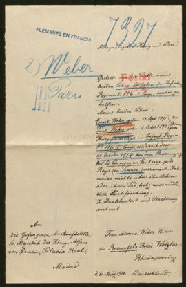 La petición comprende los datos de dos hermanos, Ernst Weber y Paul Weber solo tienen un número de historia (ALE007327), también aparece así en el fichero onomástico.