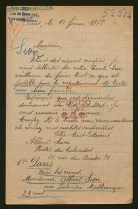 Expediente de la familia Sion Malbranque y la familia Sion Demonchy