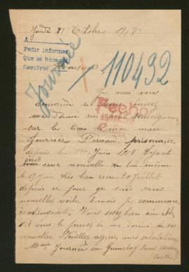 La peticionaria indica haber recibido una carta de su marido, con fecha 15-06-1918, y no haber tenido más noticias después