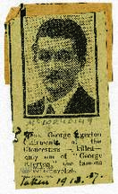 Recorte de prensa / Recto, impreso: Liuet. George Egerton Clairmonte of the Glaucester s "killed- onmy son of George Egerton the famous novelist