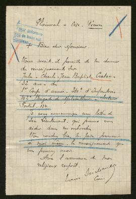 El lugar de desaparición del buscado se cita en la carta adjunta como "la famosa batalla de V..."
