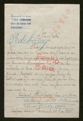Resultado de las gestiones de búsqueda: Se proporciona información sobre un militar llamado Jean Pedebosq, nacido en 1886, que está prisionero desde el 24-05-1916. No se corresponde con el que se busca