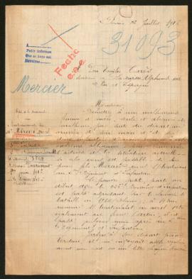 Contiene comunicación del sargento del 5º Regimiento de Infantería sobre la desaparición de Marcel Mercier