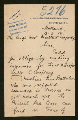 Los datos aportados en la carta no permiten determinar el lugar de desaparición. Además, puesto que el número de batallón al que pertenecía el militar fue censurado, tampoco puede conocerse a través de una fuente externa.