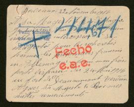 En la carta no se menciona lugar. El punto de acceso de lugar se ha obtenido tras consultar una fuente externa: http://www.chtimiste.com